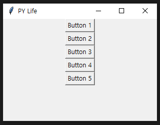 그렇기 때문에 직관적이지 못하고 절대 위치 지정 기능을 제공하는 place() 및 grid()에 비해 정밀도가 낮고 제한적입니다. 직관적이지 않은 탓에 사용법에 익숙하지 않다면 원하는 대로 배치하는 것이 다소 까다로울 수 있지만 사용법을 잘 익혀 둔다면 다른 두 Geometry Manager보다 많이 사용하실 거라 생각합니다. 개인적으로도 가장 선호하는 방식입니다.