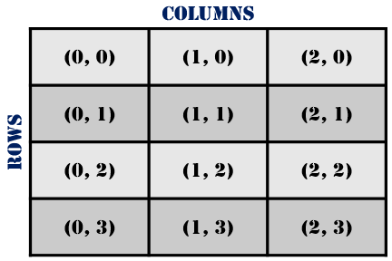 - 그리드의 각 행과 열은 인덱스로 식별됩니다.