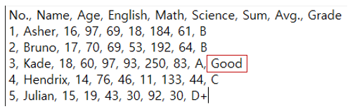 0 No. Name Age English Math Science Sum Avg. Grade None